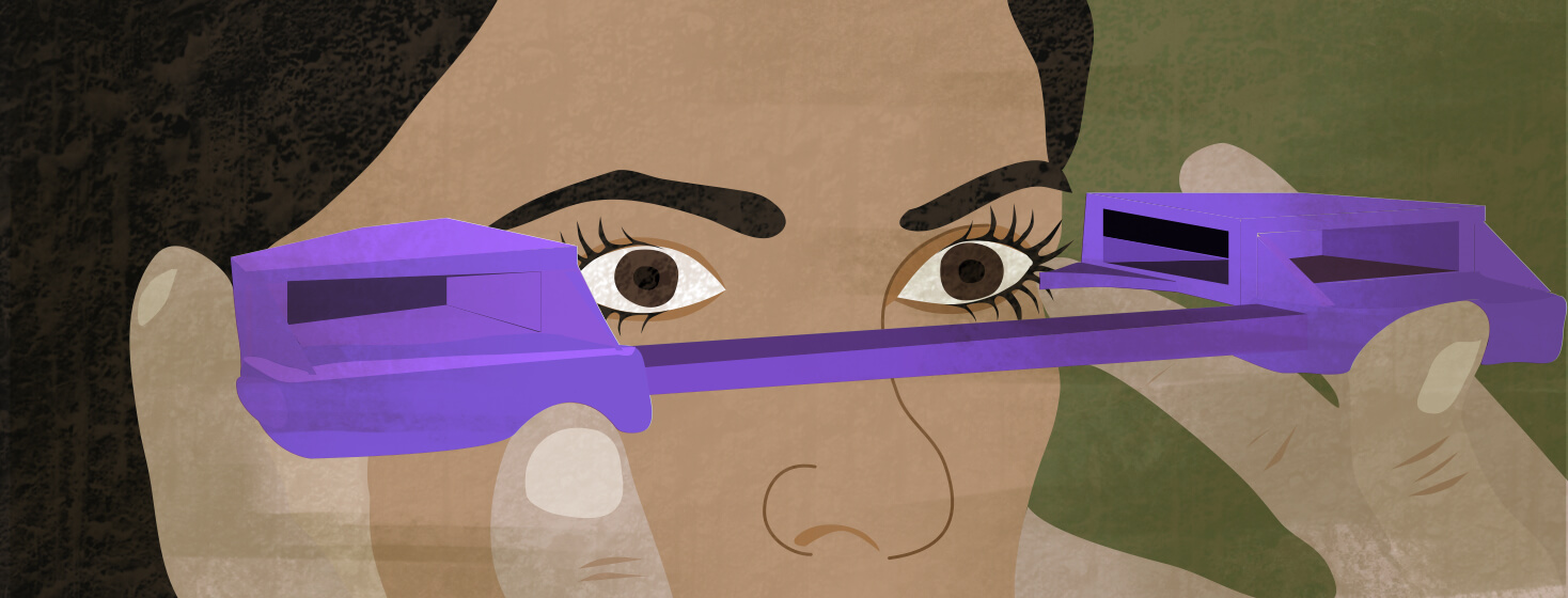 Proptosis is a very clear, visible sign of TED and is common among active and more severe cases. It is measured by an exophthalmometer (ek-sof-thul-mom-i-ter). This is a handheld tool that measures the distance from the outer edges of the eye socket to the uppermost point of the cornea.2,3